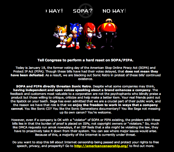 SOPA法案的日子。為了抗議美國對網絡進行審查,美國各大互聯網公司都在自己網站的醒目位置放置抗議標語,有點網站甚至全站關停。